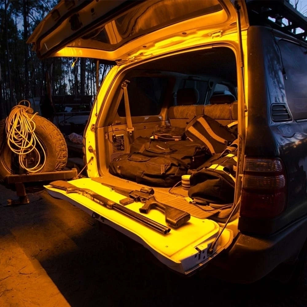 Easily set up powerful and effective illumination on a tent, 4WD, campervan or caravan with the 1m Stick-On 3 Colour Flexible LED Tape Light from Hard Korr.