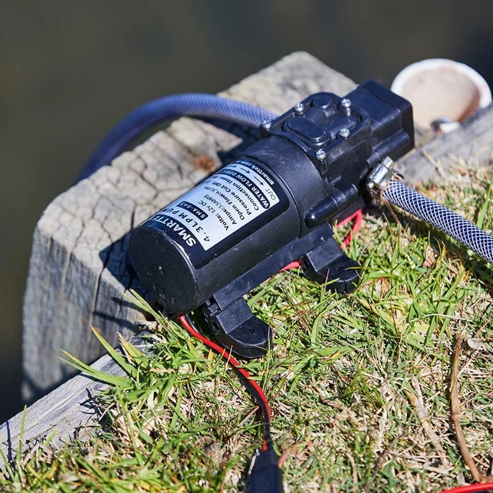 Simple to operate from a 12V power source, this pump will draw water from up to 3m and pushes water up to 10m away. It’s self-priming, so just put your hose into the water source and it will automatically start pumping the water.