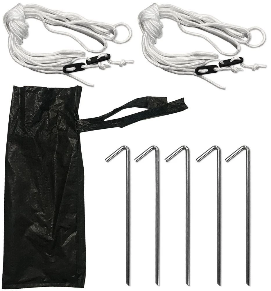 This wall is made from 199gsm 90% shade cloth, which will keep off the sun. It also comes with a D ring which makes it easy to tie down, plus all the pegs and ropes you need to set it up at the caravan park or campsite.