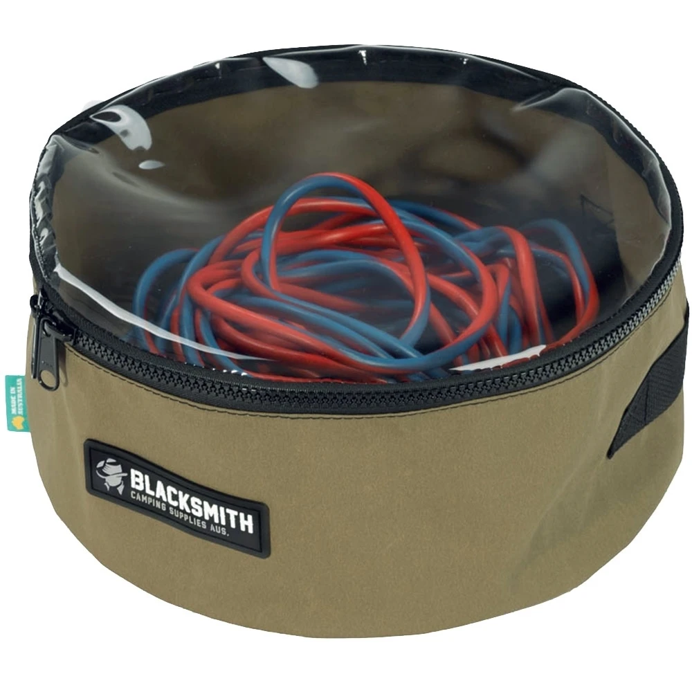 When you’re adventuring through harsh terrain, you can keep your electrical cords organised and protected with the durable Australian-made Power Cord Bag from Blacksmith Camping Supplies.
