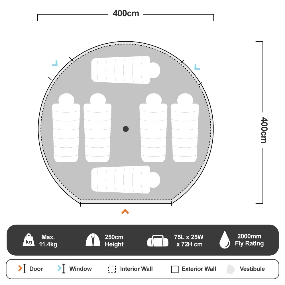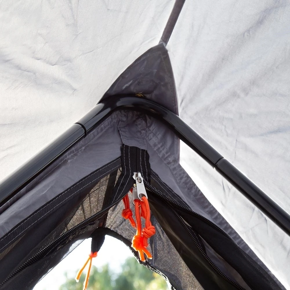 Access to this tent is through the single gable shaped entrance which reveals on multi-purpose room for sleeping or hanging out in. The roof is made from 300D material, with 150D side walls, and a heavy-duty PE floor. The fabric on the Bellbird tent has a coating which helps absorb the heat from the sun while keeping the warmth in during the evening. It also has an SPF50+ UV coating to ensure longevity and a 2000mm waterhead rating for water protection. On a warm evening, the interior ventilation ports help with air flow while the bug screen door keeps out insects.