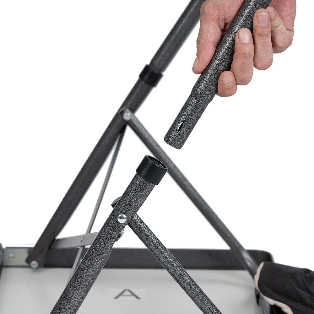 The innovative bi-fold design packs up and down easily, and a built-in carry handle makes for easy handling, or pack it into its protective carry bag for transport and storage.