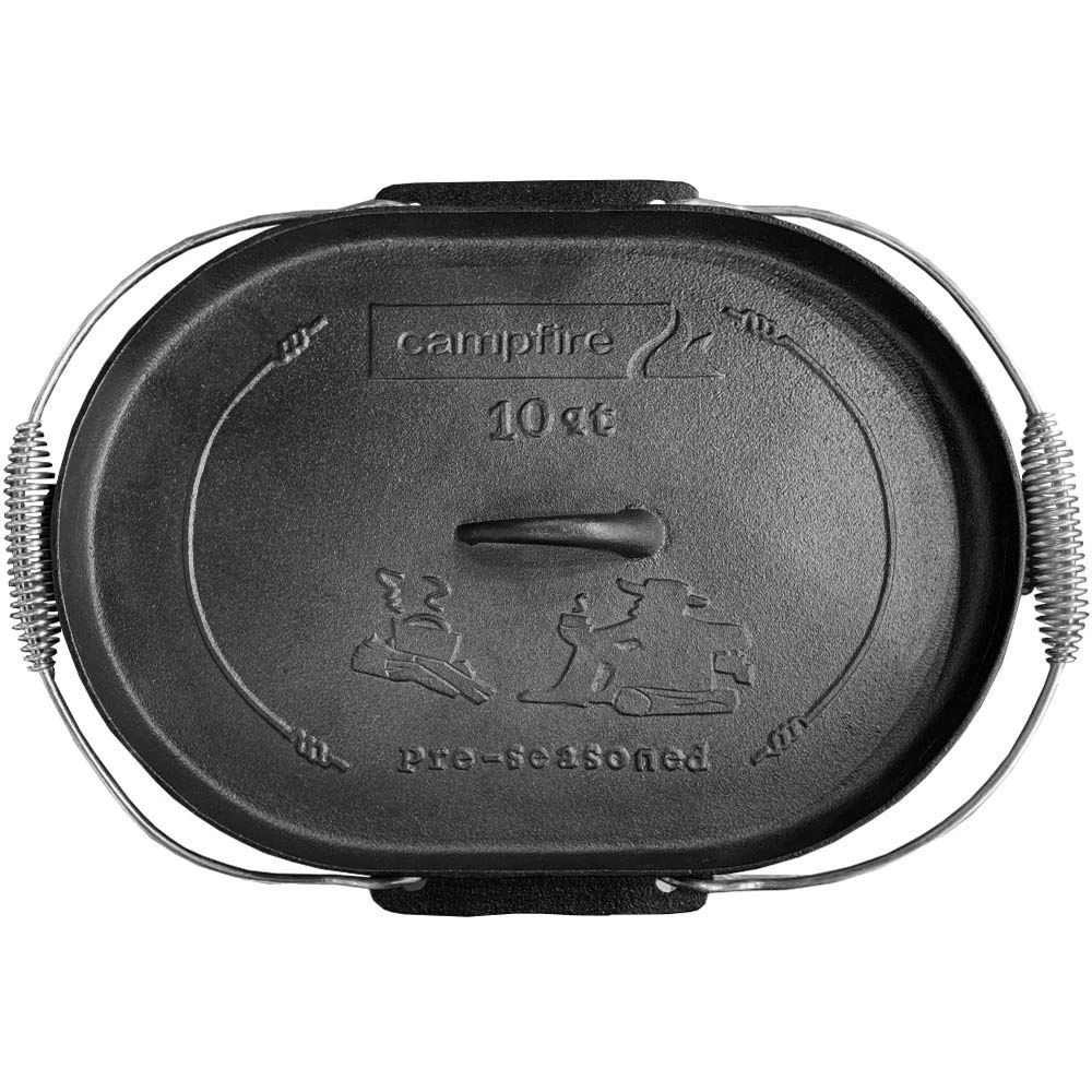 A handy shape for loaves of bread or odd shaped meat cuts, whatever your reason the Campfire 10Qt Cast Iron Camp Oven has an oval shape and twin handles, which just makes it a little different.