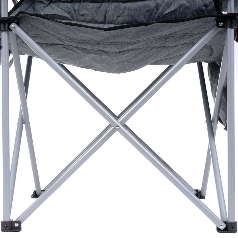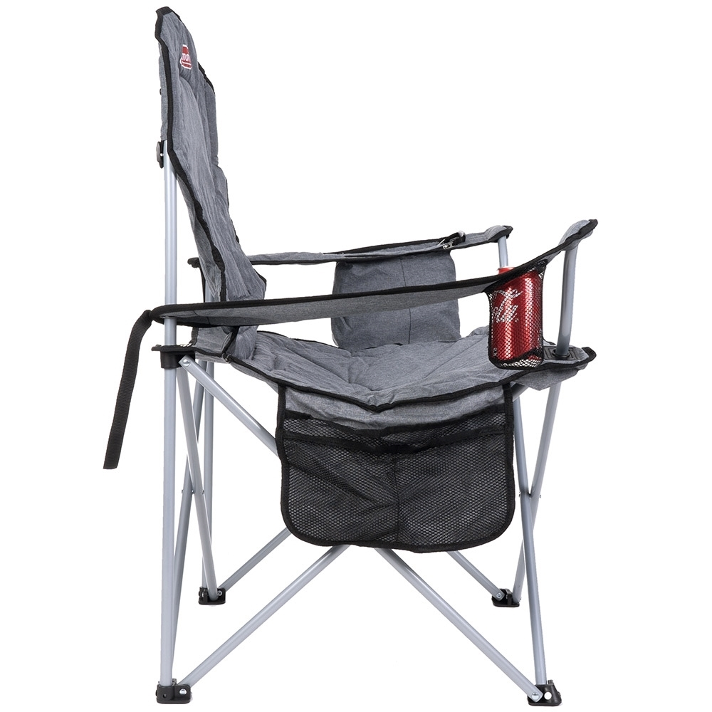 With an updated wider 600D seat for even more comfort, this chair features padding to cushion you while you’re seated and a sturdy steel frame for support. You really will be set up for a couple of hours of relaxation, as this chair has a four can capacity cooler bag attached to one arm, and a mesh drink holder and side accessory pockets for your phone or device on the other.