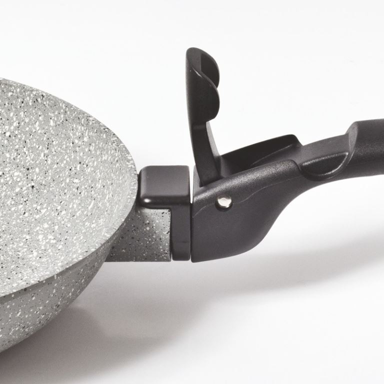 Made with a triple coated non-stick surface over lightweight die-cast aluminium the handle is easily detached making it compact for transport.