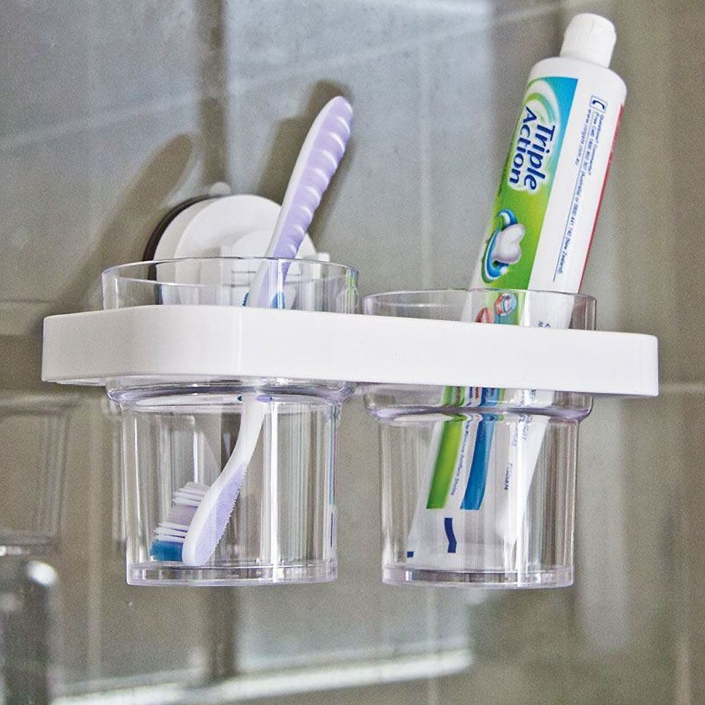 Haven’t got a lot of bathroom counter space? The Twin Cup Holder from Companion will solve that dilemma for you.