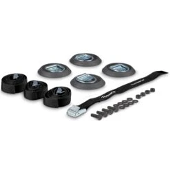 Four low-profile tie-down points with strong metal d-rings can be secured with the included shake proof nuts. Four heavy-duty fridge tie down straps with quick release buckles can then be used through the handles of your fridge and the d-rings to keep your fridge in place.