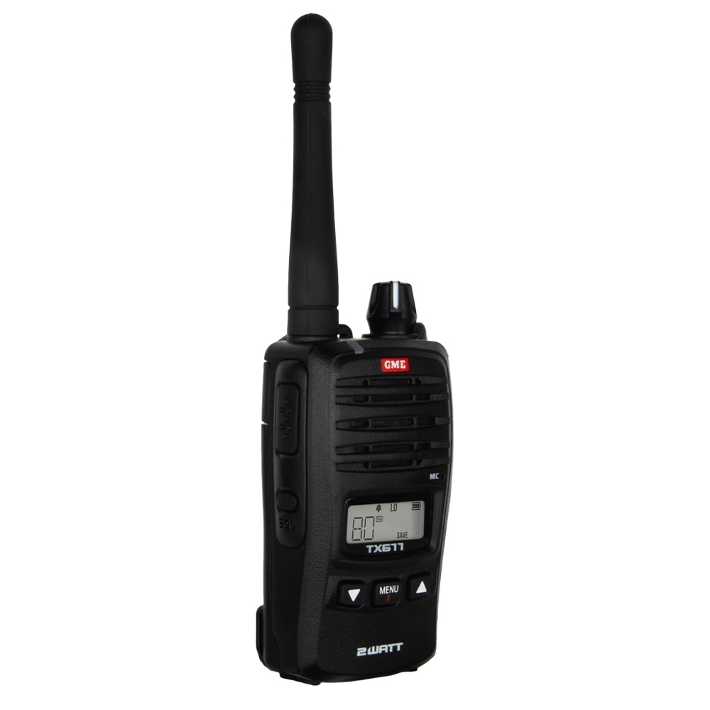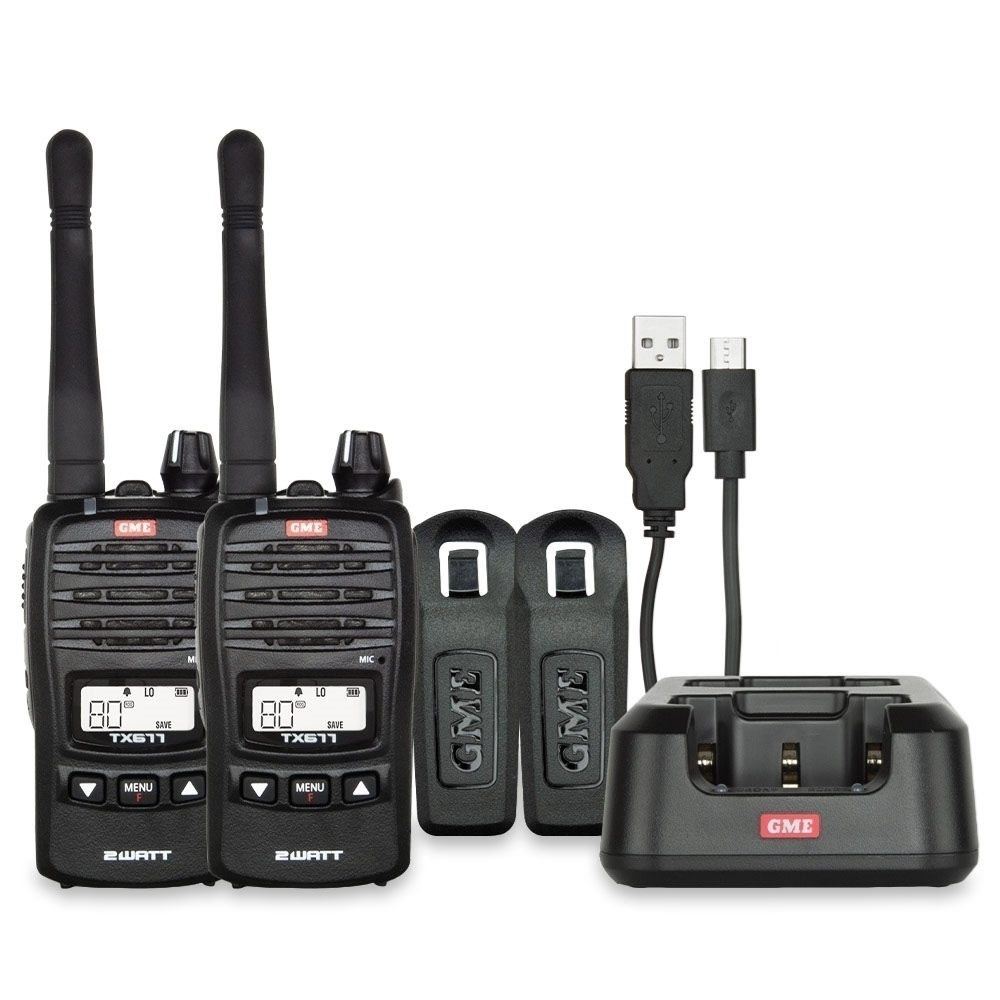 Talk back and forth with a mate using the TX677 2 Watt UHF CB Handheld Radio Twin Pack from GME.