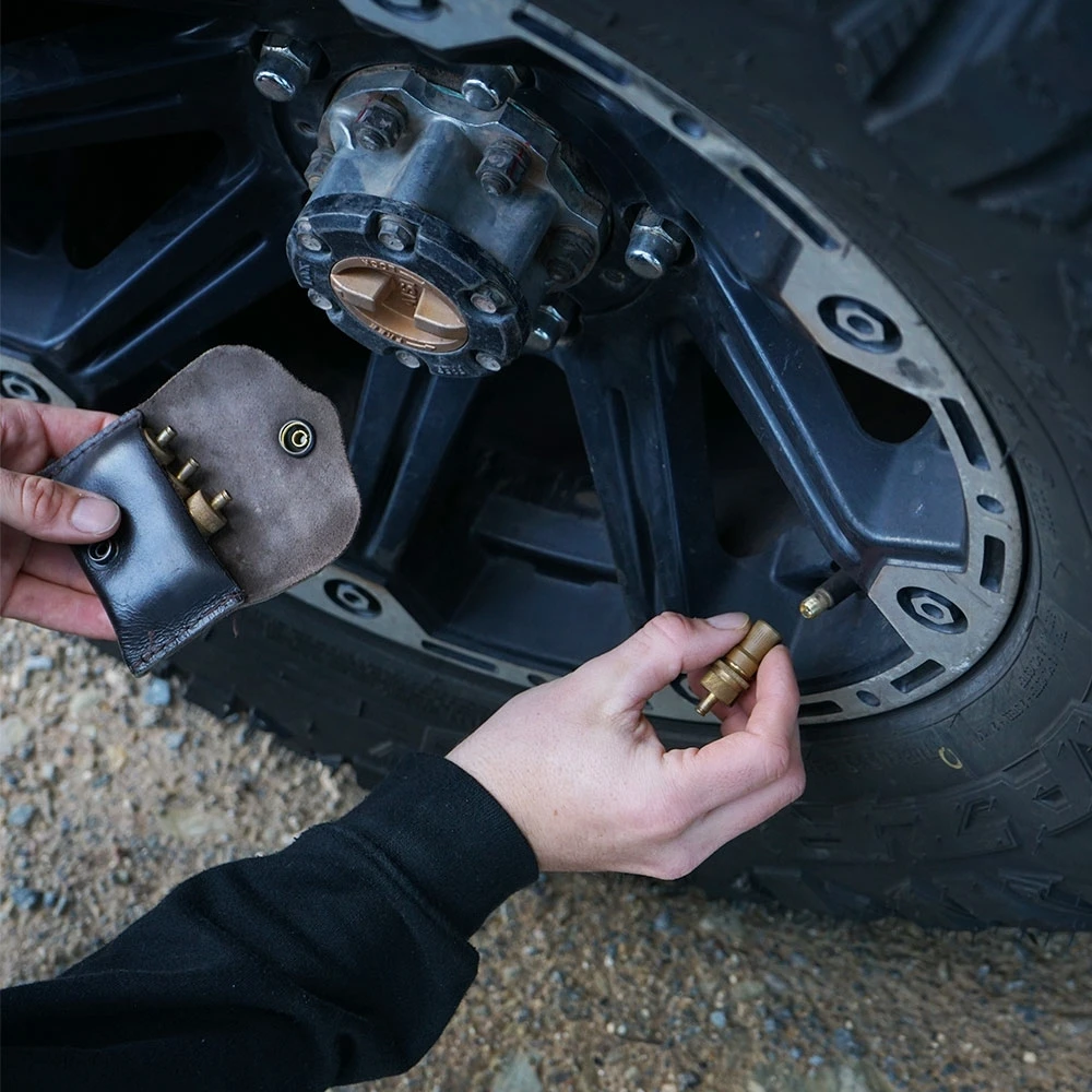 This pack of 100% brass beauties is suitable for vehicles over 4-tonne. They feature an extra exhaust hole, come preset at a pressure of 35 psi, and are accurate to within 0.25 psi. The cap can be adjusted at 4 psi per half-turn or 8 psi per full turn, as well as automatically started while 20 psi above its preset pressure. When manually lifting the piston, the deflator can start at 2 psi above the preset.