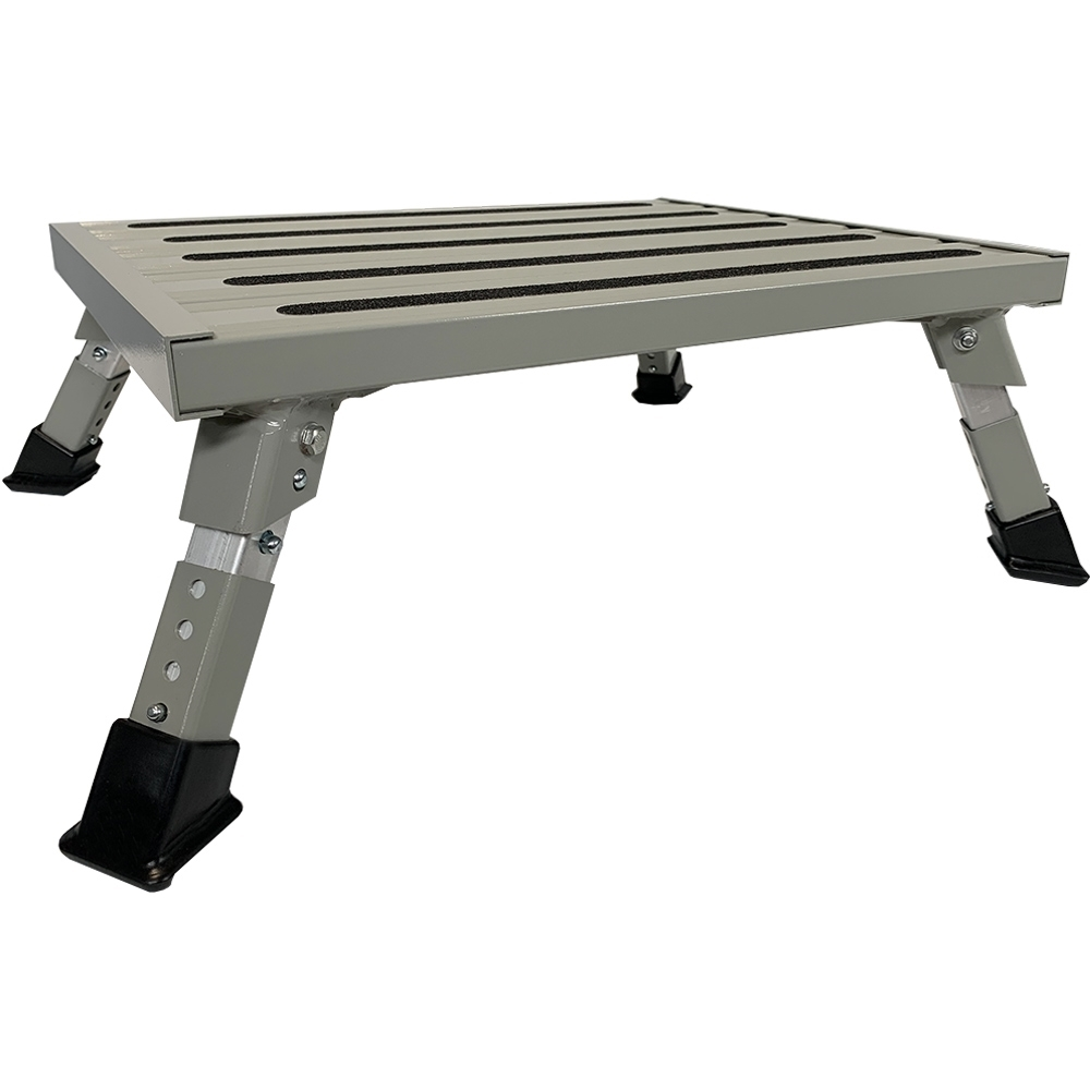 When you’re parked on an uneven surface, you can still set up a step without any dramas with the Heavy Duty Folding Step with Adjustable Legs from On The Road RV.
