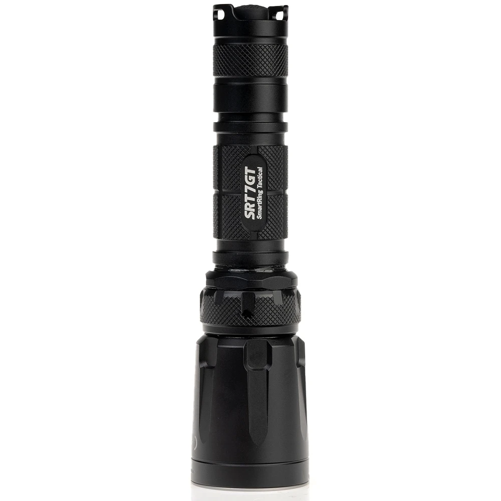 The SRT7GT Flashlight is made sturdy with toughened mineral glass housed in a military grade hard anodised alloy body. The SRT7GT utilises the latest Cree LED technology and provides a maximum output of 1000 lumens. Its powered by a single Li-ion battery or 2 x CR123, and has an indicator light to show you the status of your battery. Equipped with a third-generation smart selector ring, you can rapidly switch between various brightness levels and functions as well as a grand throw feature.