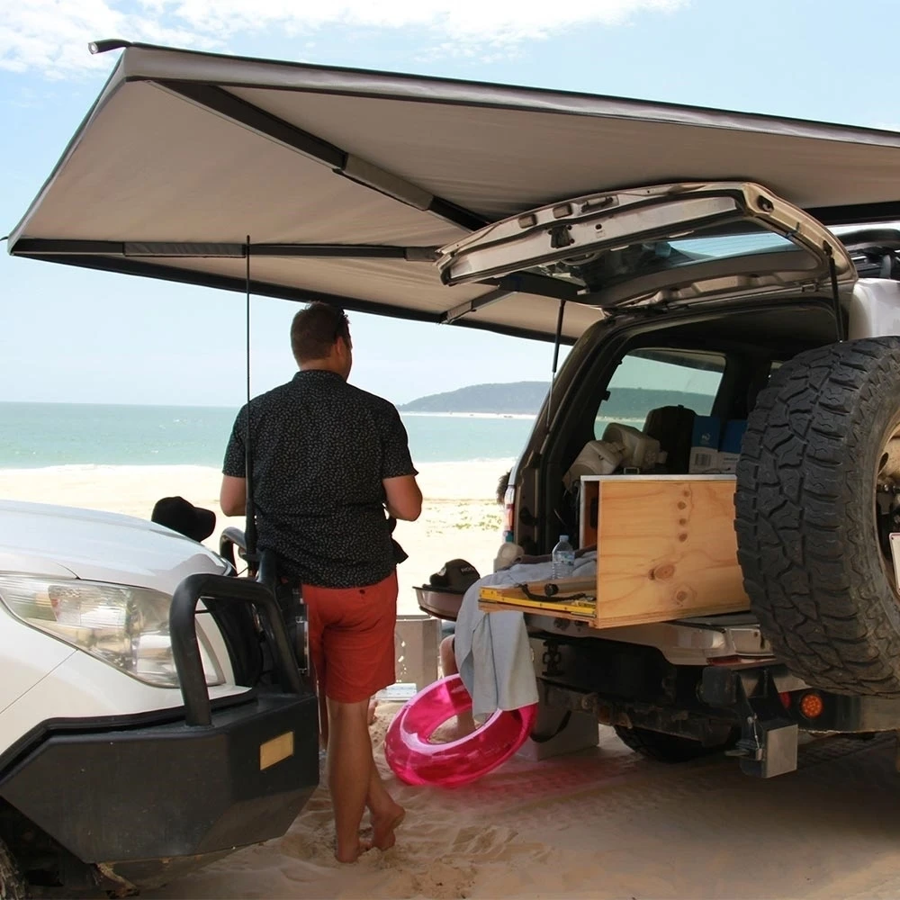 Australian made and built to suit camper vans, trailers, and large SUV’s – Supa Peg have stripped away the poles to allow more room to groove, owing to the laser cut bracket system for a simple yet stable design. With a total length exceeding 7 metres and a vast area spanning 17 square metres, you’ve got the outback barbies and beachside parties covered – literally. Trump the harsh Aussie summers owing to the UV treated materials, while resistance to mould and mildew help to overcome humidity and damp conditions. Even the toughest individuals need carrying home – which is why its heavy duty storage bag is water-resistant and UV-treated for protection from the harsh Aussie elements.