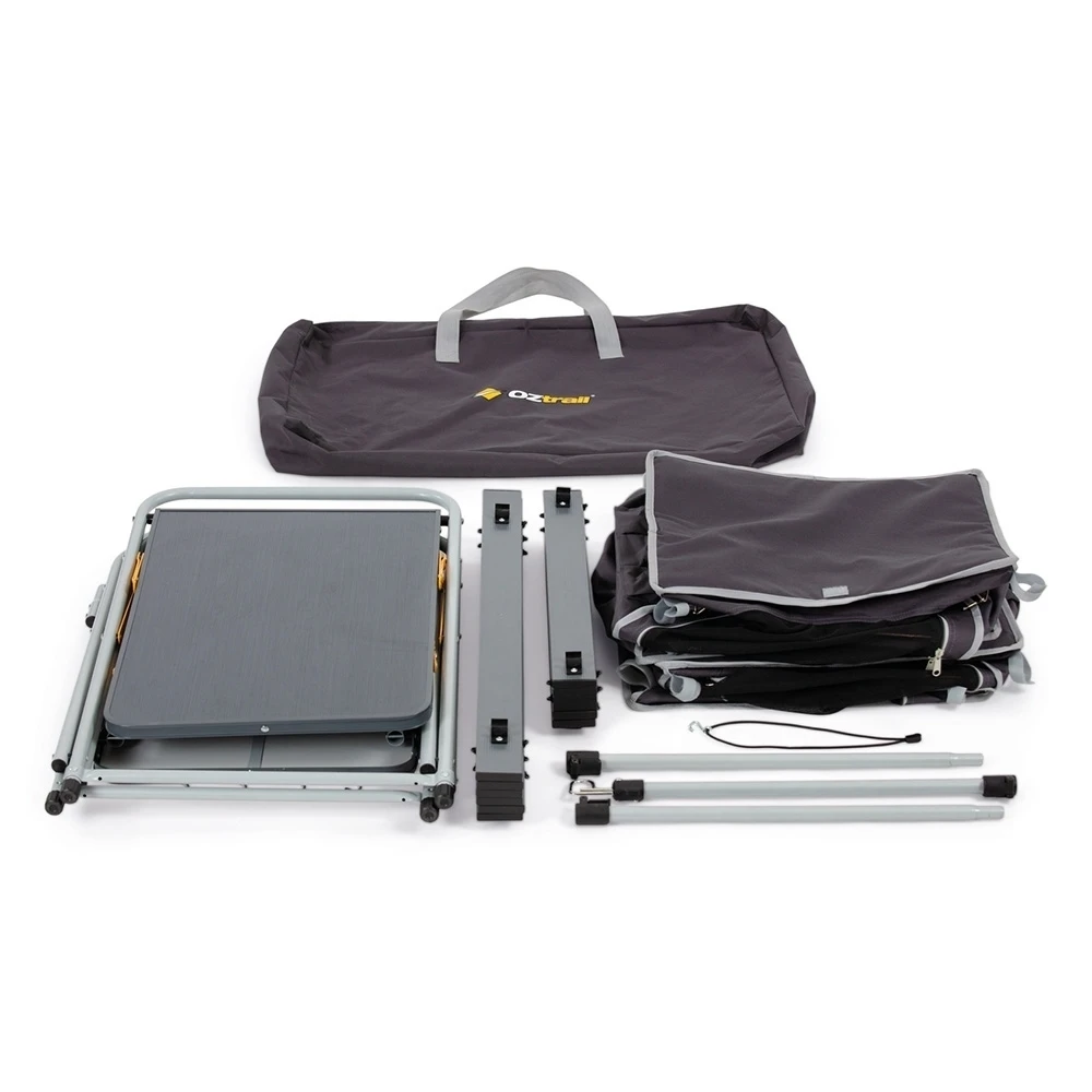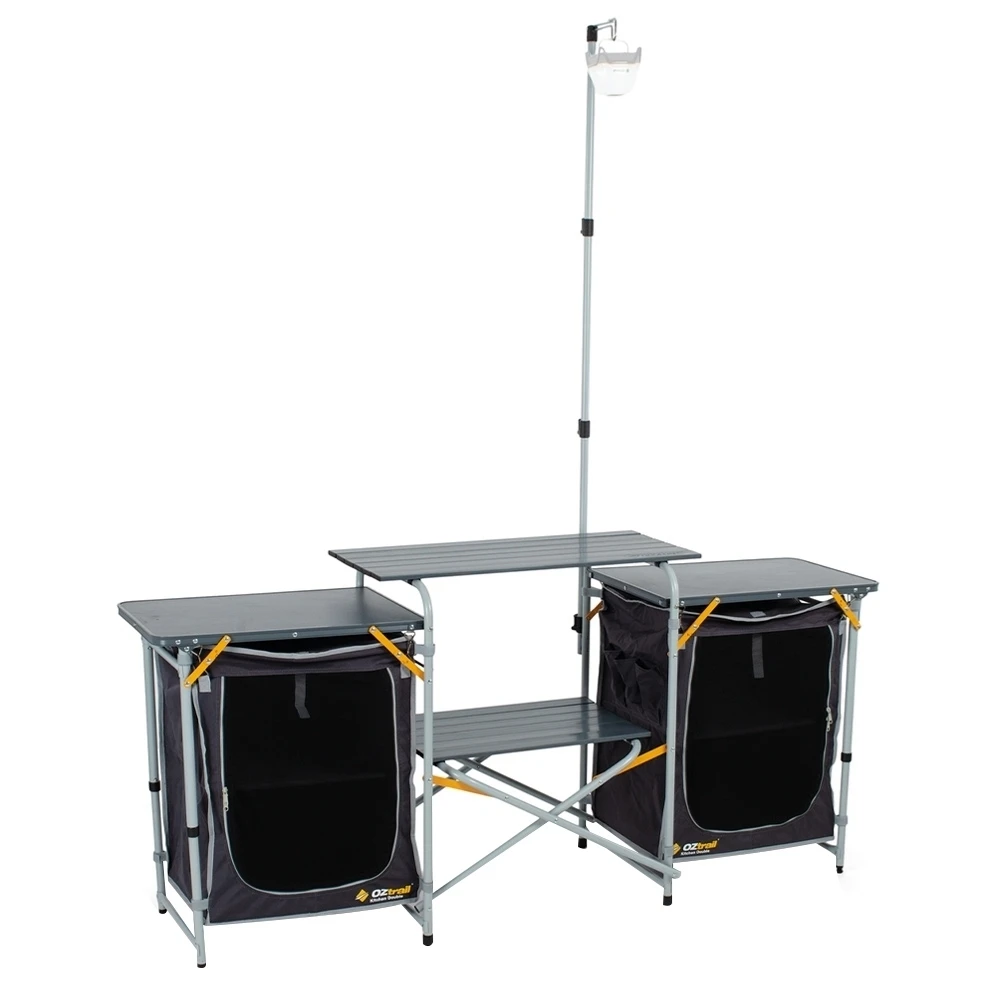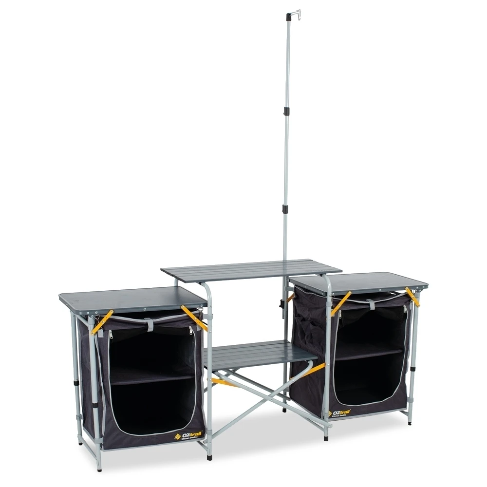 For every fireside feast, the OZtrail Camp Kitchen with Double Pantry is your benchtop henchman for every culinary camper.