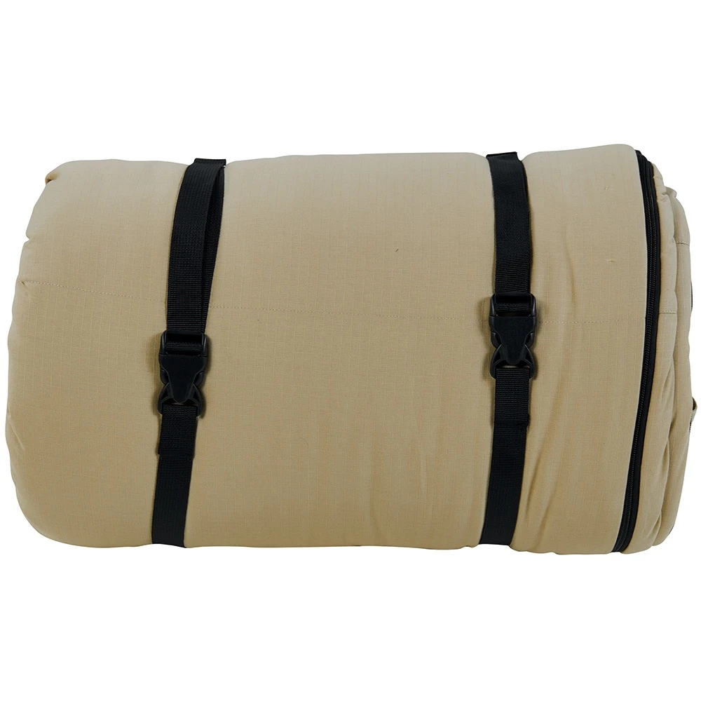 Those who rough it rural aren’t wrapped in cotton wool – but a removable fleece liner adds comfort and warmth in temperatures reaching -7 degrees. Blending sublime comfort with outdoor durability is the 200gsm Ripstop cotton canvas outer, while a 100% cotton flannel inner and contoured hood has you sleeping soundly in home-like comfort. Its 80% recycled fill construction packs compactly into a waterproof carry bag that features a roll-top for ease, convenience, and superior pack-away, while hanging loops make for easy airing after washing.