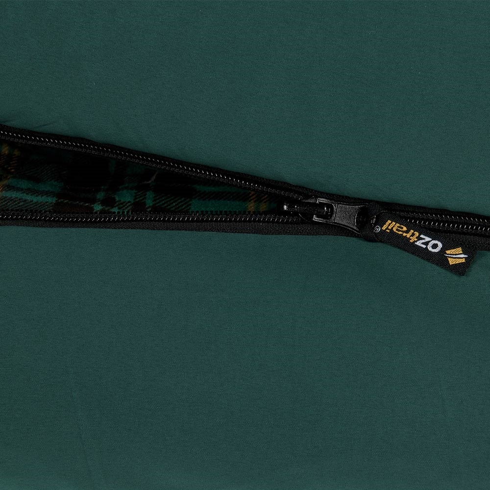 With a soft-sounding and soft-to-touch brushed polyester outer, a 100% cotton flannel inner, and a contoured hood – sleep soundly in hushed, home-like comfort. Internal pockets keep the knick-knacks close to your chest, a Velcro closure at the head of the zip keeps the bag closed despite an open zipper – and snuggle down into sweet dreams with no resistance, thanks to an anti-snag webbing and draft tube integrated into the zipper. Its 80% recycled fill construction packs compactly into a 4-way compression stuff sack for ease, convenience, and superior portability too, while hanging loops make for easy airing after washing.