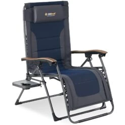 True rural royalty, this chair boasts a wide, comfortable padded seat and backrest to support those post-slogging slumps at camp. For those quick naps cradling a nightcap in your lap, the strong steel frame and adjustable headrest pillow work together to support those big dreams and heavy heads. For refreshment at the crest in those mountain-top moments too, enjoy the side table with an inbuilt cup holder too.