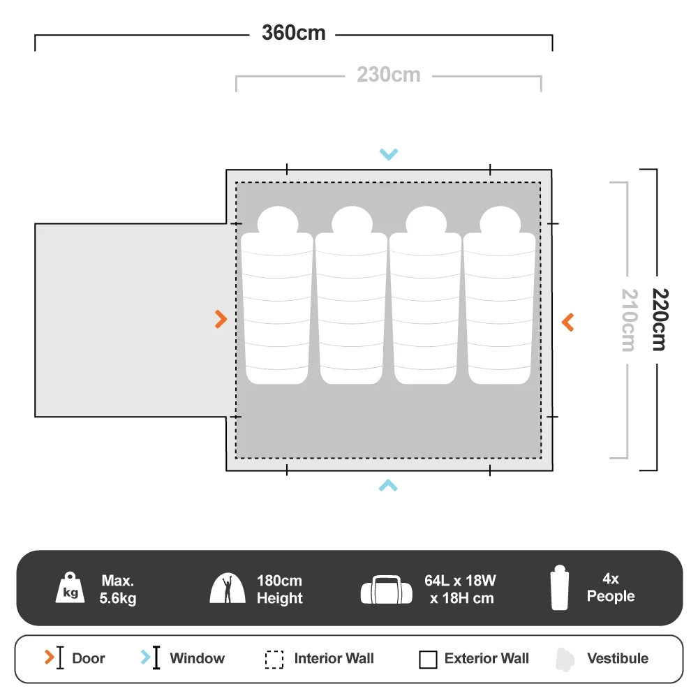 You’ve got a bit of a dilemma. You need an affordable and simple tent to get you and three others through a weekend away. The OZtrail Tasman 4V has everything you’ll actually need from an entry-level tent, with no unnecessary trimmings. This tent is ideal for balmier climates, as the inner tent is made from breathable polyester which will give you plenty of airflow on warmer nights.