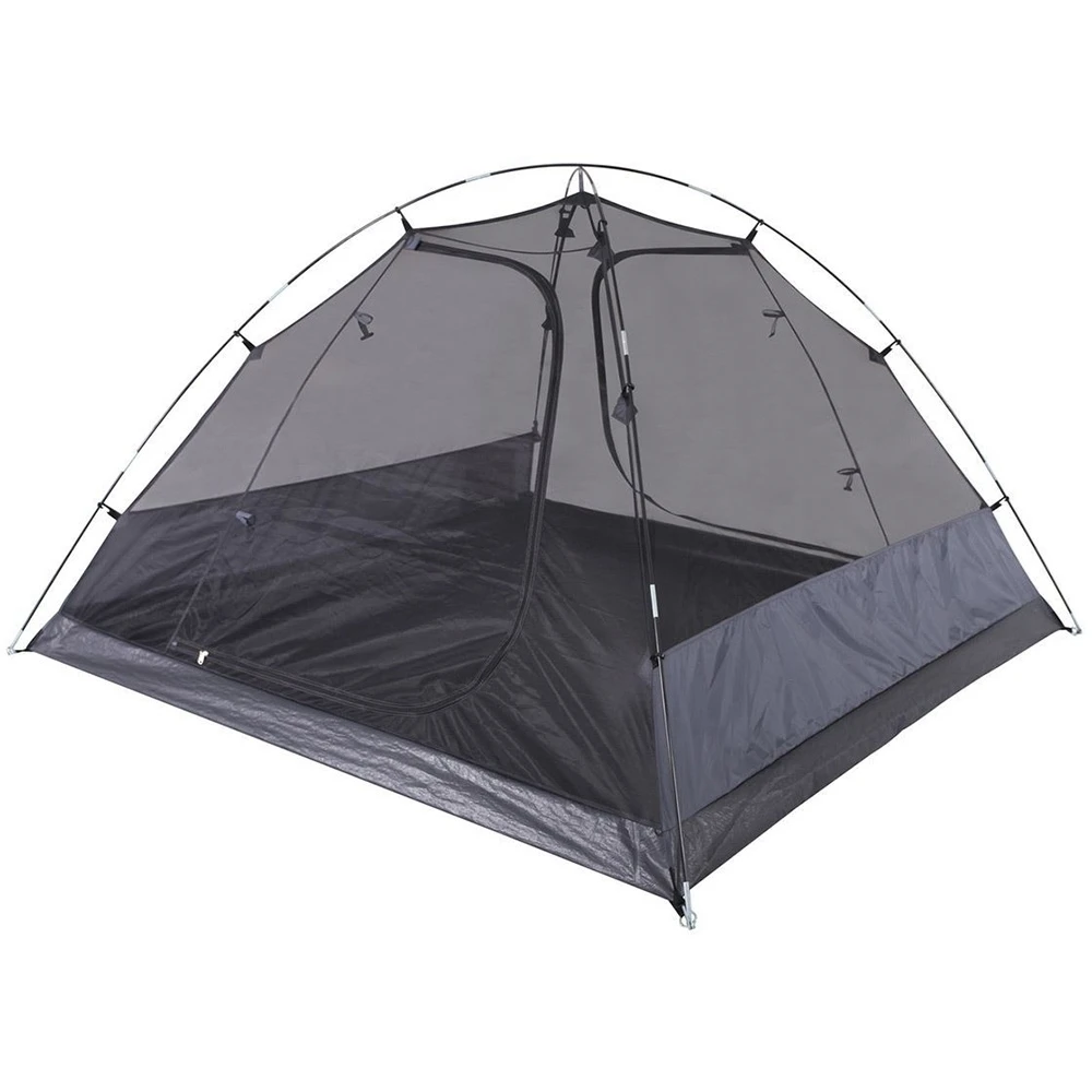 No-See-Um mesh covers the windows, so you’ll be out of the line of fire of insects while allowing plenty of fresh air to circulate. If you’re a bit clumsy when you’re tired, you’re less likely to trip over when attending to nature’s call – as the doors on the Tasman are a user-friendly D shape. The cross-pole configuration makes this tent a bit easier to set up and has the added bonus of helping watershed off the fly.