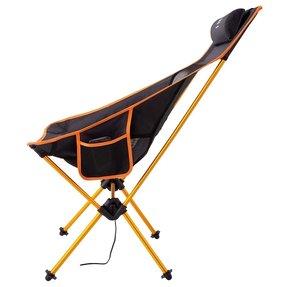 This baby will hold up to 130kg, is fully supported by a simple yet strong 18mm aluminium frame, and packs down to a compact size so it can easily be carried in the supplied bag. The high back allows you to lean into it and relax with the headrest providing just enough lift and support. Keep your phone or other personal items close in the side pocket, while the 600D PU polyester fabric with mesh panels will keep you nicely ventilated. The Pegasus features nifty little feet that not only protect the legs, but the winged design helps prevent the legs from sinking into soft ground.