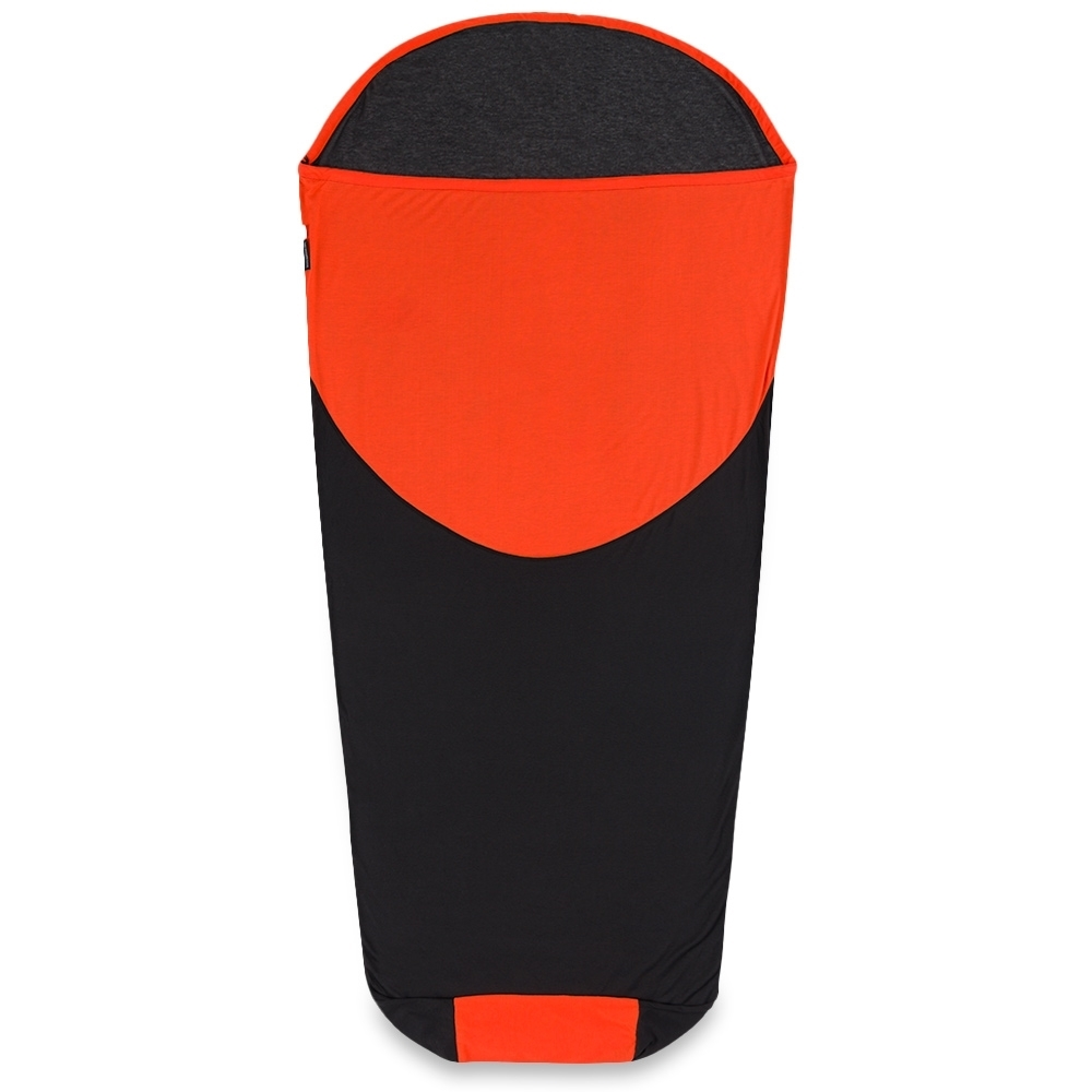 This liner will add up to 11°C of warmth to your sleeping bag, has a mummy shape with box foot, a thin drawcord with a tiny cord lock around the hood, and packs up into its own included stuff sack for storage.
