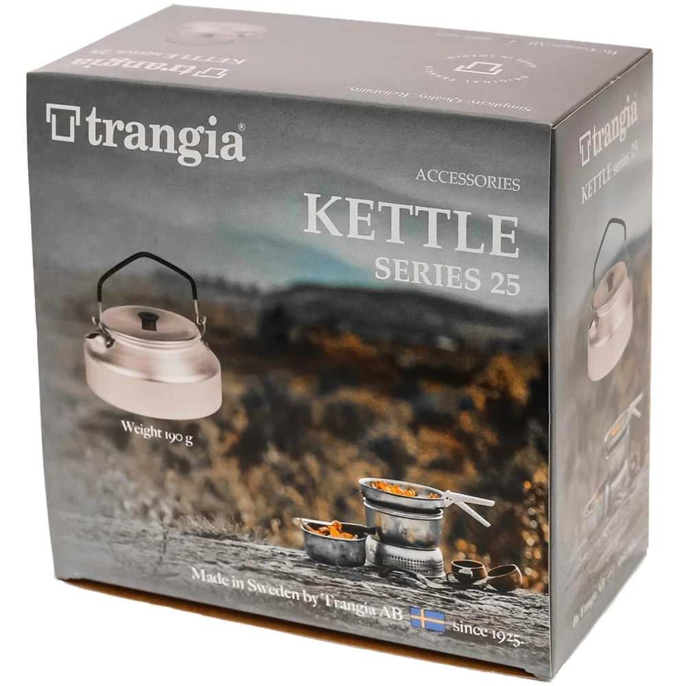 The Trangia 25 Series Kettle packs away inside all 25 series cooksets, but it can be used on any stove or small fire to boil up a few cups of hot water for coffee, tea or hot chocolate.